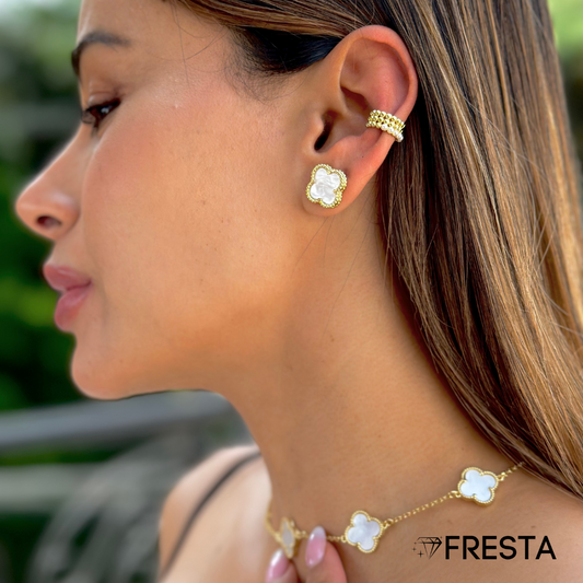 Cada accesorio aquí destacado lleva nuestro sello de garantía, con acabado rodinado y doble baño de oro de 18K. Si buscas un brillo que dure, acabas de encontrar el lugar perfecto.