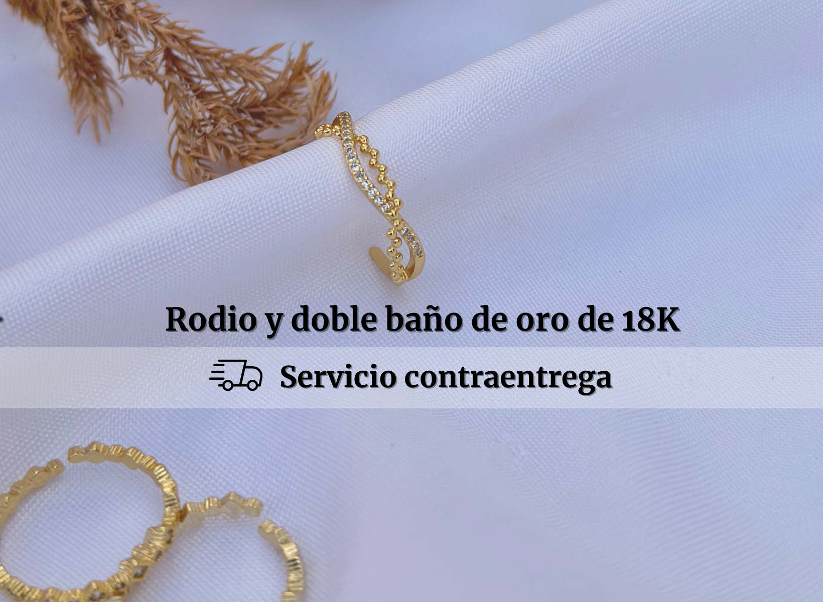 Cada accesorio aquí destacado lleva nuestro sello de garantía, con acabado rodinado y doble baño de oro de 18K. Si buscas un brillo que dure, acabas de encontrar el lugar perfecto.