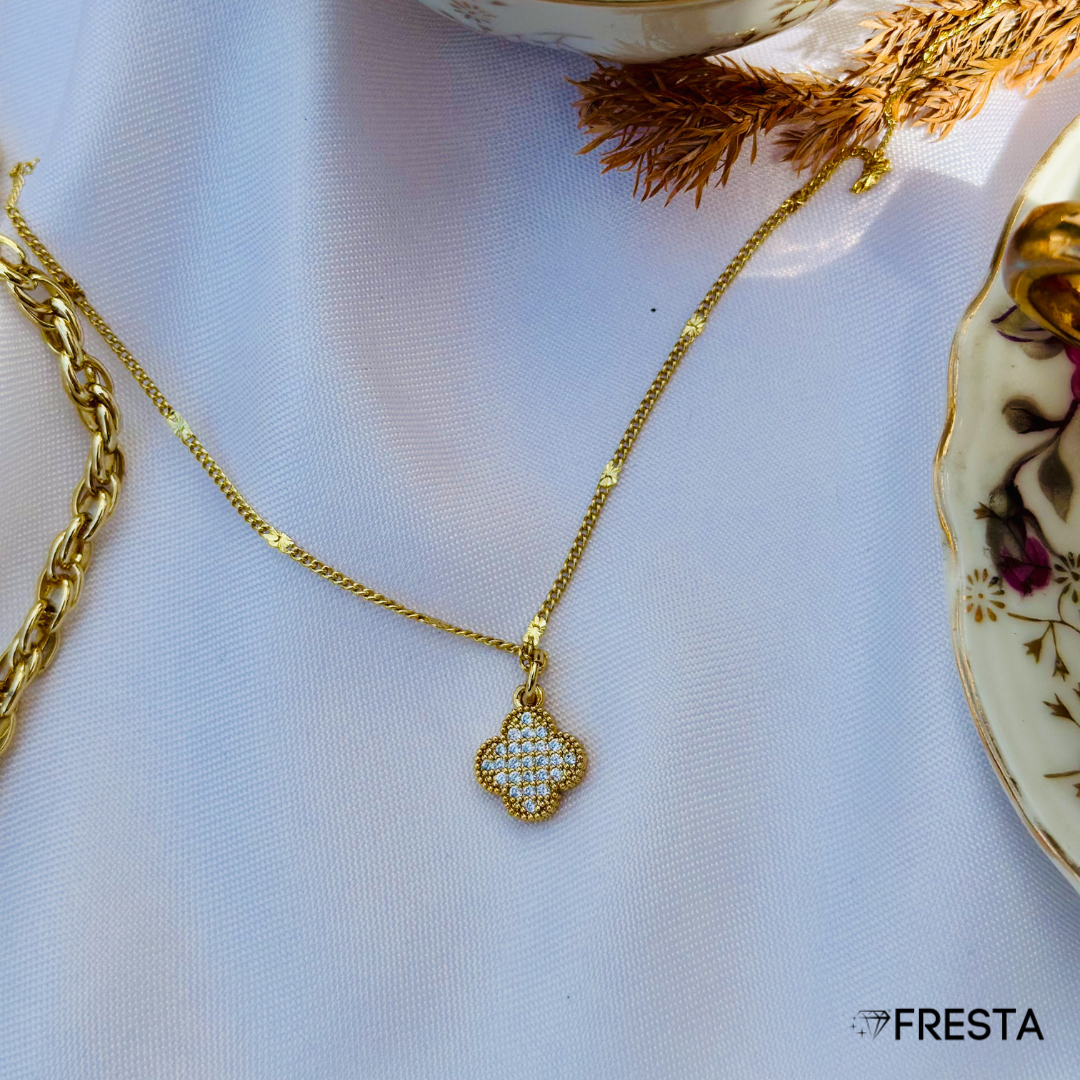 Un amuleto lleno de brillo y estilo. Este trébol resplandece con pequeños detalles que capturan la luz y transforman cualquier look en algo especial. Elegante, simbólica y absolutamente única, perfecta para quienes creen en la magia de los detalles. 🍀✨