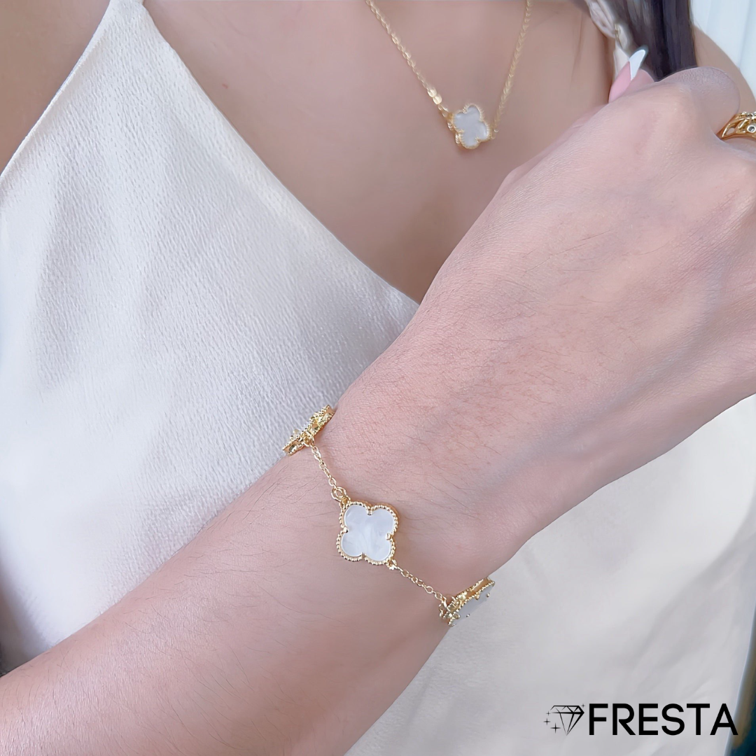 La Pulsera Lucky Clover Bliss es el símbolo de buena fortuna y estilo sofisticado. Con múltiples tréboles en un elegante acabado, esta pulsera combina un diseño moderno con el encanto tradicional de la suerte. Ideal para quienes buscan añadir un toque de distinción a su look, mientras llevan consigo un amuleto de prosperidad y protección. Completa tu colección con esta pieza única que te acompañará con estilo y suerte en cada paso.🍀✨